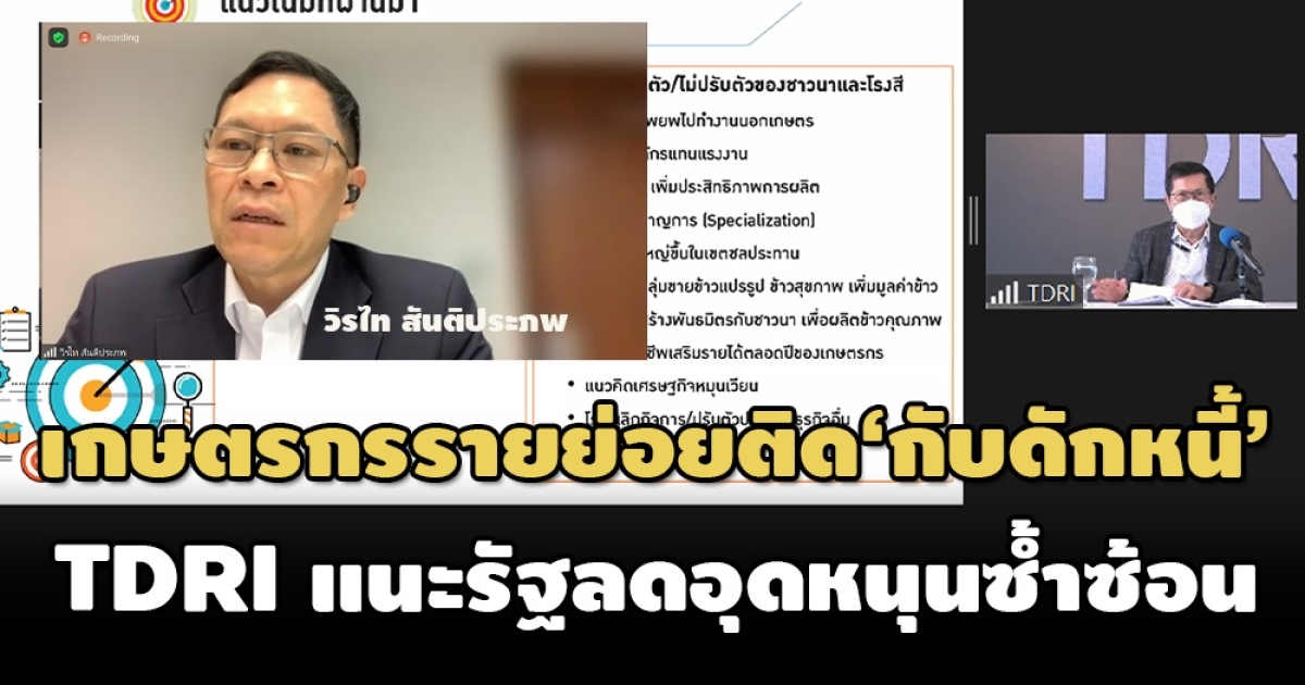 ‘วิรไท’ ชี้เกษตรกรรายย่อยติด ‘กับดักหนี้’ ส่งผลให้ปรับตัวยาก-เปลี่ยนไปปลูกพืชอื่นไม่ได้ ขณะที่ ‘นักวิชาการทีดีอาร์ไอ’ แนะรัฐลดเงินอุดหนุน ‘ปลูกข้าว’ ซ้ำซ้อน