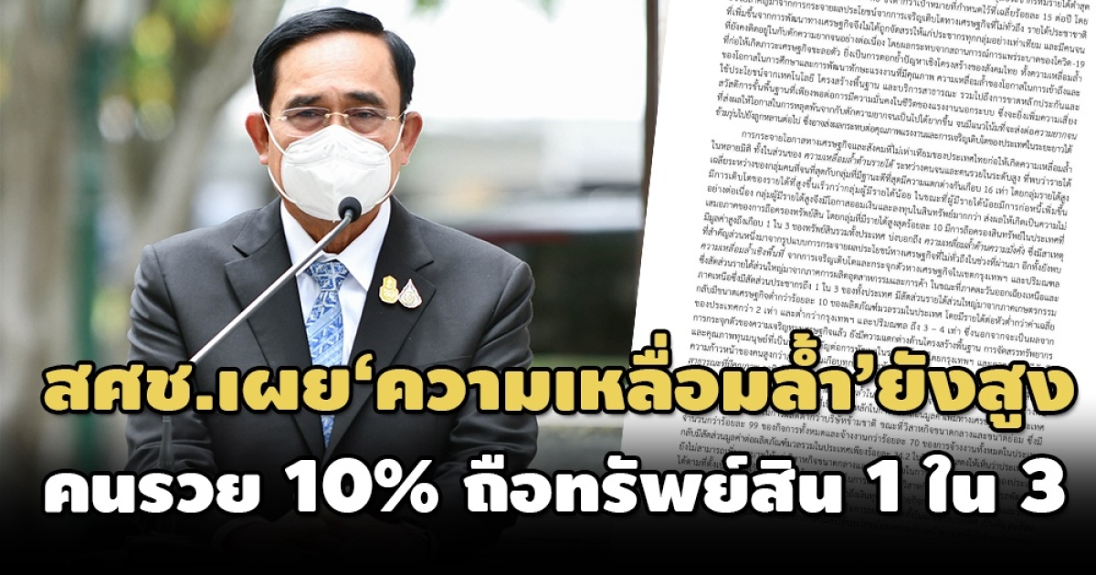 @ความเหลื่อมล้ำรายได้สูงเกือบ 16 เท่า-คนรวย 10% ถือทรัพย์สิน 1 ใน 3