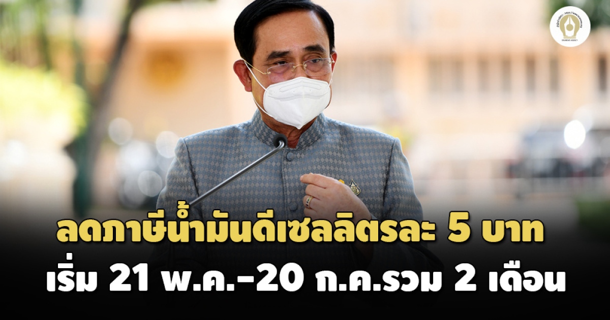 ครม.เห็นชอบลดภาษีน้ำมันลิตรละ 5 บาท นาน 2 เดือน เริ่ม 21 พ.ค.-20 ก.ค. ตรึงราคาดีเซลพยุงต้นทุนการผลิต-ขนส่ง ส่วนเบนซิน ‘บิ๊กตู่’ แง้มอาจช่วยเหลือเฉพาะกลุ่ม