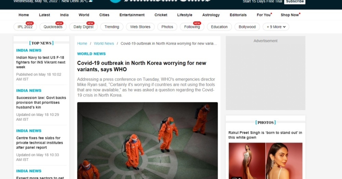 สำนักข่าวอิศรา (www.isranews.org) รายงานข่าวเกี่ยวกับการระบาดของไวรัสโควิด-19 หรือโคโรนาไวรัสว่า องค์การอนามัยโลกหรือ WHO ได้ออกมาแถลงข่าวแสดงความกังวลว่าการระบาดของไวรัสโควิดในประเทศเกาหลีเหรือนั้นอาจนำมาซึ่งไวรัสโควิดสายพันธุ์ใหม่ ในขณะที่ประเทศเกาหลีเหนือกำลังพยามรับมือกับสิ่งที่เรียกกันว่าเป็นการแพร่กระจายของไข้หวัดลึกลับตั้งแต่ปลายเดือน เม.ย.
