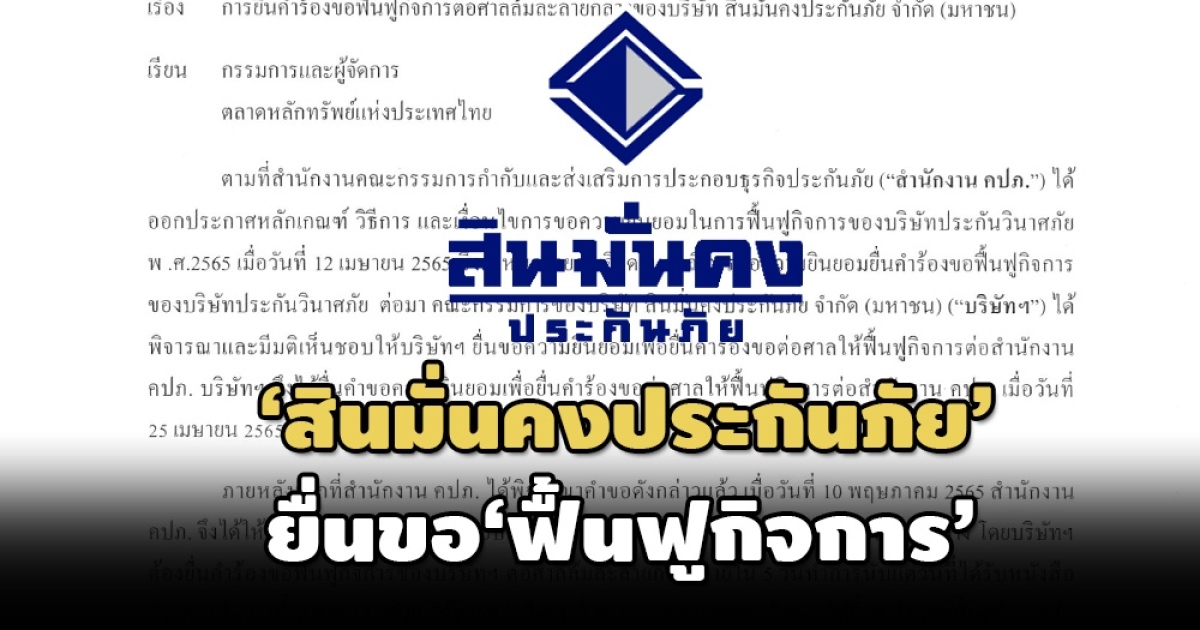 ต่อมา คณะกรรมการของบริษัท สินมั่นคงประกันภัย จำกัด (มหาชน) (บริษัทฯ) ได้พิจารณาและมีมติเห็นชอบให้บริษัทฯ ยื่นขอความยินยอมเพื่อยื่นคำร้องขอต่อศาลให้ฟื้นฟูกิจการต่อสำนักงาน คปภ. บริษัทฯ จึงได้ยื่นคำขอความยินยอมเพื่อยื่นคำร้องขอต่อศาลให้ฟื้นฟูกิจการต่อสำนักงาน คปภ. เมื่อวันที่ 25 เม.ย.2565 นั้น