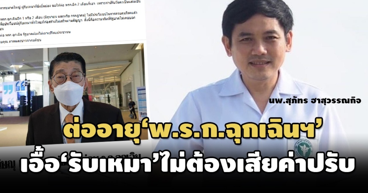 วันเดียวกัน นพ.สุภัทร ยังโพสต์ข้อความผ่านเฟซบุ๊กส่วนตัว ‘นพ.สุภัทร ฮาสุวรรณกิจ’ โดยมีเนื้อหาว่า “ต่อ พ.ร.ก. ฉุกเฉิน น่าจะเพื่อเอื้อผู้รับเหมาจนหยดสุดท้าย