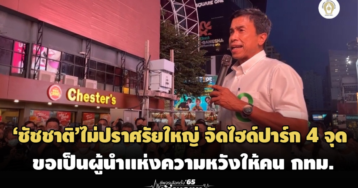 ‘ชัชชาติ’ ไม่จัดเวทีปราศรัยใหญ่ เดินสายไฮด์ปาร์ก 4 จุด ‘สยามสแควร์-สีลม-เยาวราช-ข้าวสาร’ พร้อมเป็นผู้นำแห่งความหวัง พาทุกคนเดินหน้าสร้างเมืองที่น่าอยู่สำหรับทุกคน