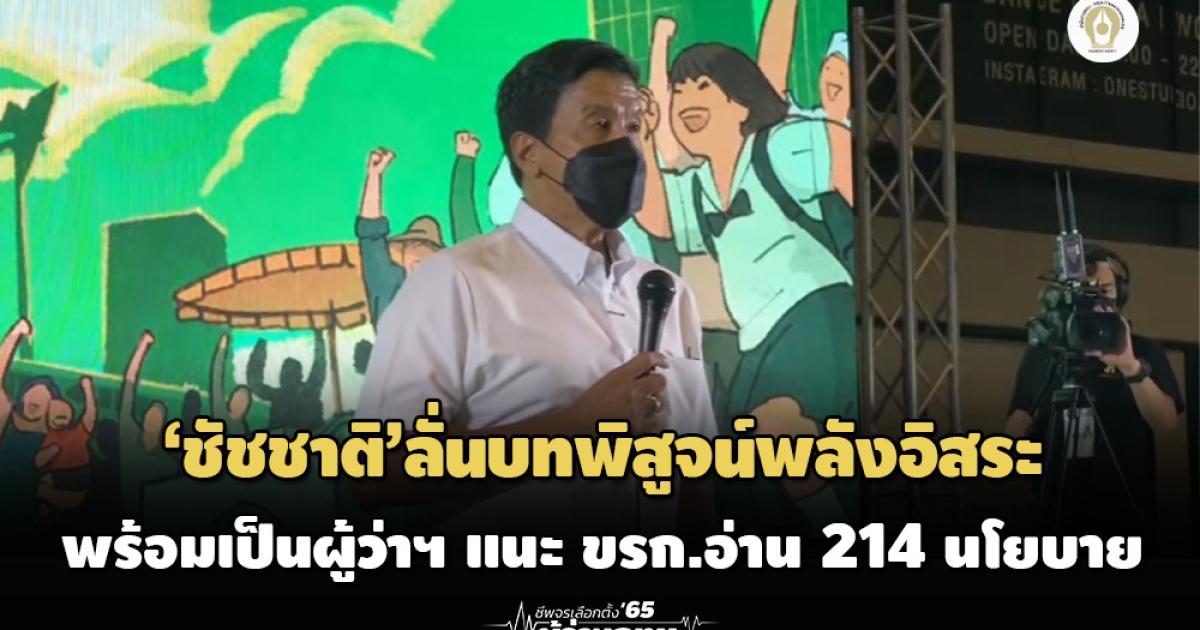 นายชัชชาติ กล่าวย้ำว่า เป็นบทพิสูจน์ว่า พลังของอิสระ พลังของความอาสาสมัครที่รวมตัวกัน 2 ปีครึ่ง ที่เราเดินเหมือนคนหลงทาง ที่ไม่รู้ว่าไปถูกทางหรือเปล่า มาถึงวันนี้ ไม่ได้เป็นพรรคการเมือง เป็นอิสระ เราก็สามารถทำการเมืองได้ มีพลังไม่น้อยกว่าอยู่ในพรรคการเมือง