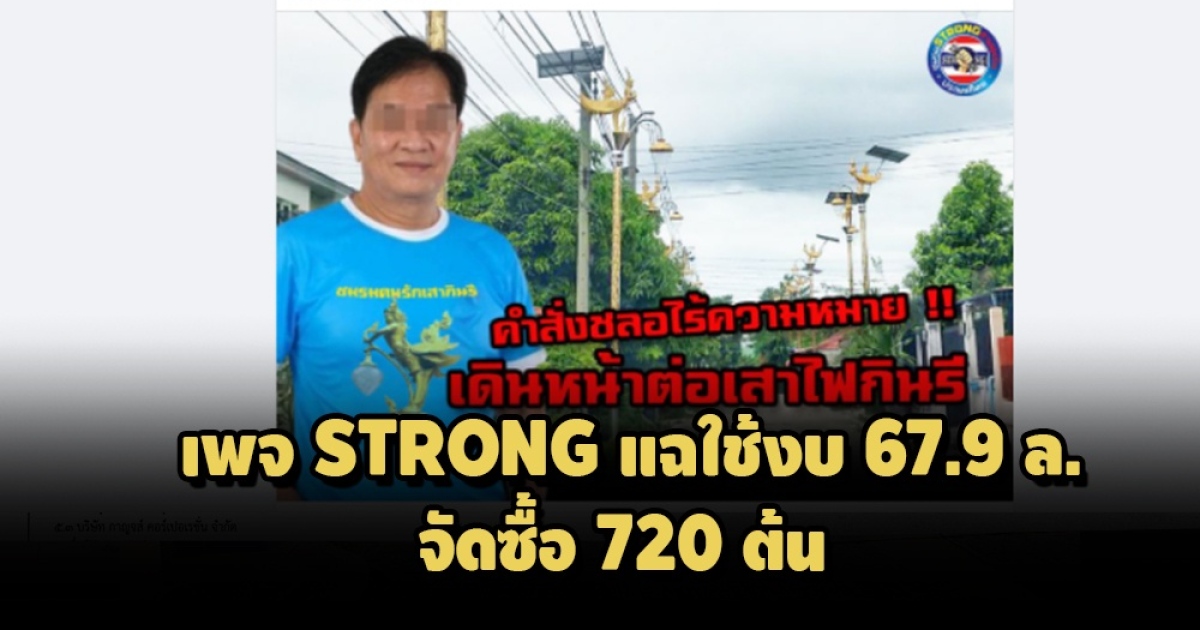 'เพจ STRONG' แฉคำสั่งชะลอโครงการไร้ความหมาย หลัง อบต.ราชาเทวะเดินหน้าสั่งซื้อเสาไฟกินรีต่อ อ้างข้อมูลเว็บจัดซื้อภาครัฐ พบจัดซื้อเพิ่ม 720 ต้น วงเงิน 67.9 ล. เอกชนซื้อซอง 37 ราย แต่เสนอราคาแค่ 2 ราย