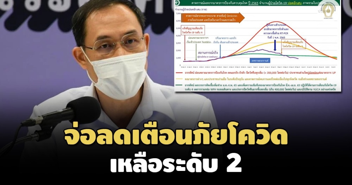 สธ.จ่อพิจารณาลดเตือดภัยโควิดเหลือระดับ 2 เลิกตรวจ ATK เฝ้าระวัง ปรับระบบรายงานผู้ป่วยรายวันเป็นเฉลี่ย 7 วัน เฉพาะมีอาการเข้าโรงพยาบาล เริ่ม 1 มิ.ย. นี้