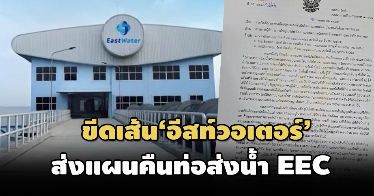 ‘อธิบดีกรมธนารักษ์’ ทำหนังสือถึง ‘อีสท์วอเตอร์’ ขีดเส้นตายส่งมอบแผนการส่งมอบทรัพย์สินโครงการท่อส่งน้ำ EEC ภายใน 15 มิ.ย.นี้ ก่อนกำหนดวันเข้าตรวจทรัพย์สินฯ