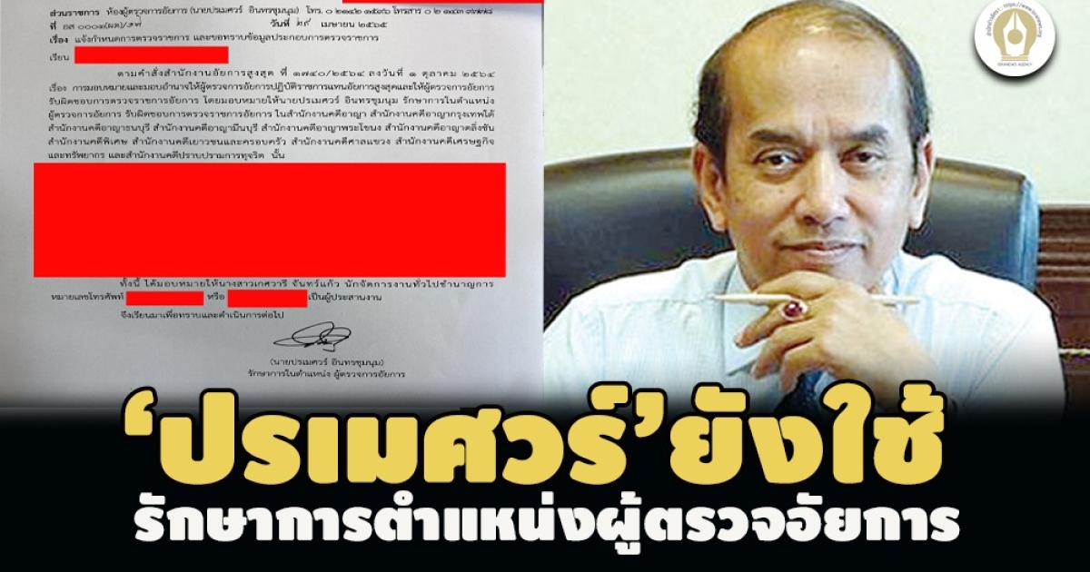 แต่ปรากฏว่า ในช่วงปลายเดือนเมษายน 2565 ที่ผ่านมา นายปรเมศวร์ ได้ทำบันทึกข้อความแจ้งเวียน ระบุส่วนราชการ ห้องผู้ตรวจการอัยการ (นายปรเมศวร์ อินทรชุมนุม)เรื่องการแจ้งกำหนดการตรวจราชการไปยังสำนักงานคดีอาญาที่อยู่ในความรับผิดชอบ โดยระบุตำแหน่งรักษาการผู้ตรวจการอัยการ พร้อมอ้างอิงคำสั่งสำนักงานอัยการสูงสุด ที่ 1740/2564 ลงวันที่ 1 ตุลาคม 2564 เรื่อง การมอบหมายและมอบอำนาจให้ผู้ตรวจการอัยการปฏิบัติราชการแทนอัยการสูงสุดและให้ผู้ตรวจการอัยการรับผิดชอบการตรวจราชการอัยการ โดยมอบหมายให้นายปรเมศวร์ อินทรชุมนุม รักษาการในตำแหน่งผู้ตรวจการอัยการ ในสำนักงานคดีอาญา สำนักงานคดีอาญากรุงเทพใต้ สำนักงานคดีอาญาธนบุรี สำนักงานคดีอาญามีนบุรี สำนักงานคดีอาญาพระโขนง สำนักงานคดีอาญาตลิ่งชัน สำนักงานคดีพิเศษ สำนักงานคดีเยาวชนและครอบครัว สำนักงานคดีศาลแขวง สำนักงานคดีเศรษฐกิจ และทรัพยากร และสำนักงานคดีปราบปรามการทุจริต
