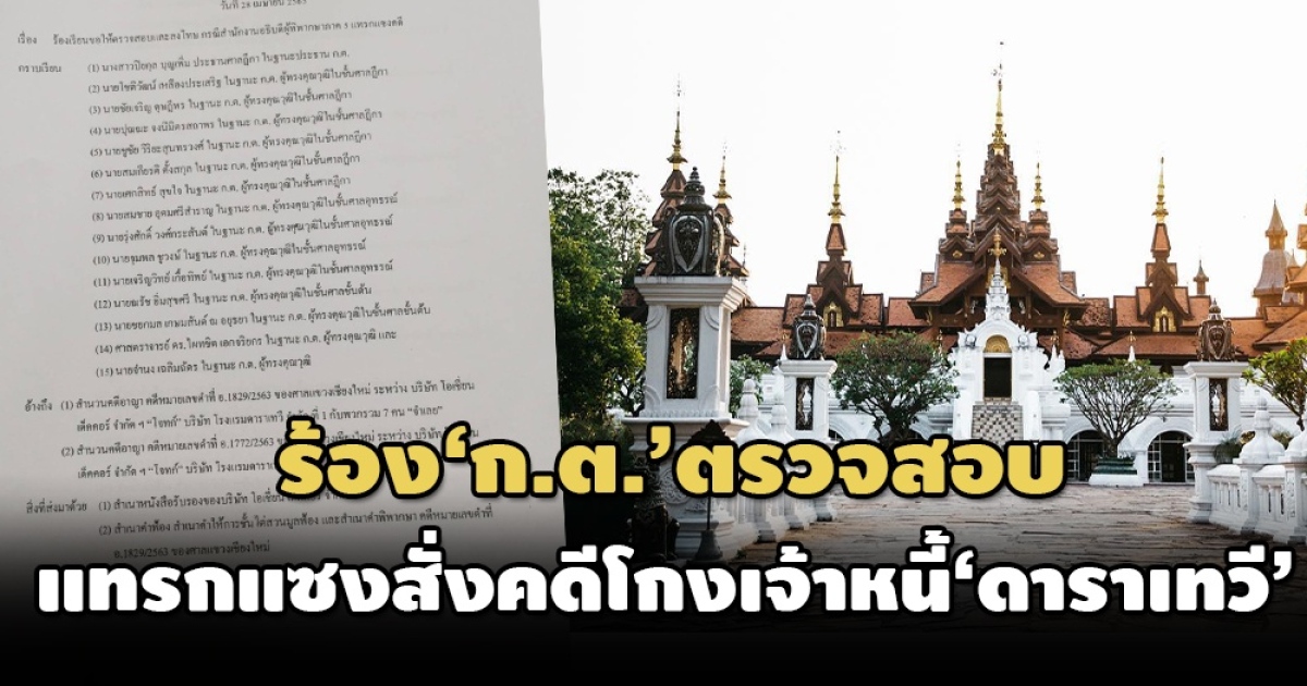 ‘โอเชี่ยน เด็คคอร์’ เจ้าหนี้ ‘โรงแรมดาราเทวี’ จ.เชียงใหม่ ยื่นหนังสือถึง ‘ก.ต.’ ขอให้ตรวจสอบ ‘สำนักงานอธิบดีผู้พิพากษาภาค 5’ แทรกแซงการสั่งคดีโกงเจ้าหนี้ หลังพบมีการกระทำส่อขัดระเบียบราชการฝ่ายตุลาการศาลยุติธรรมฯ