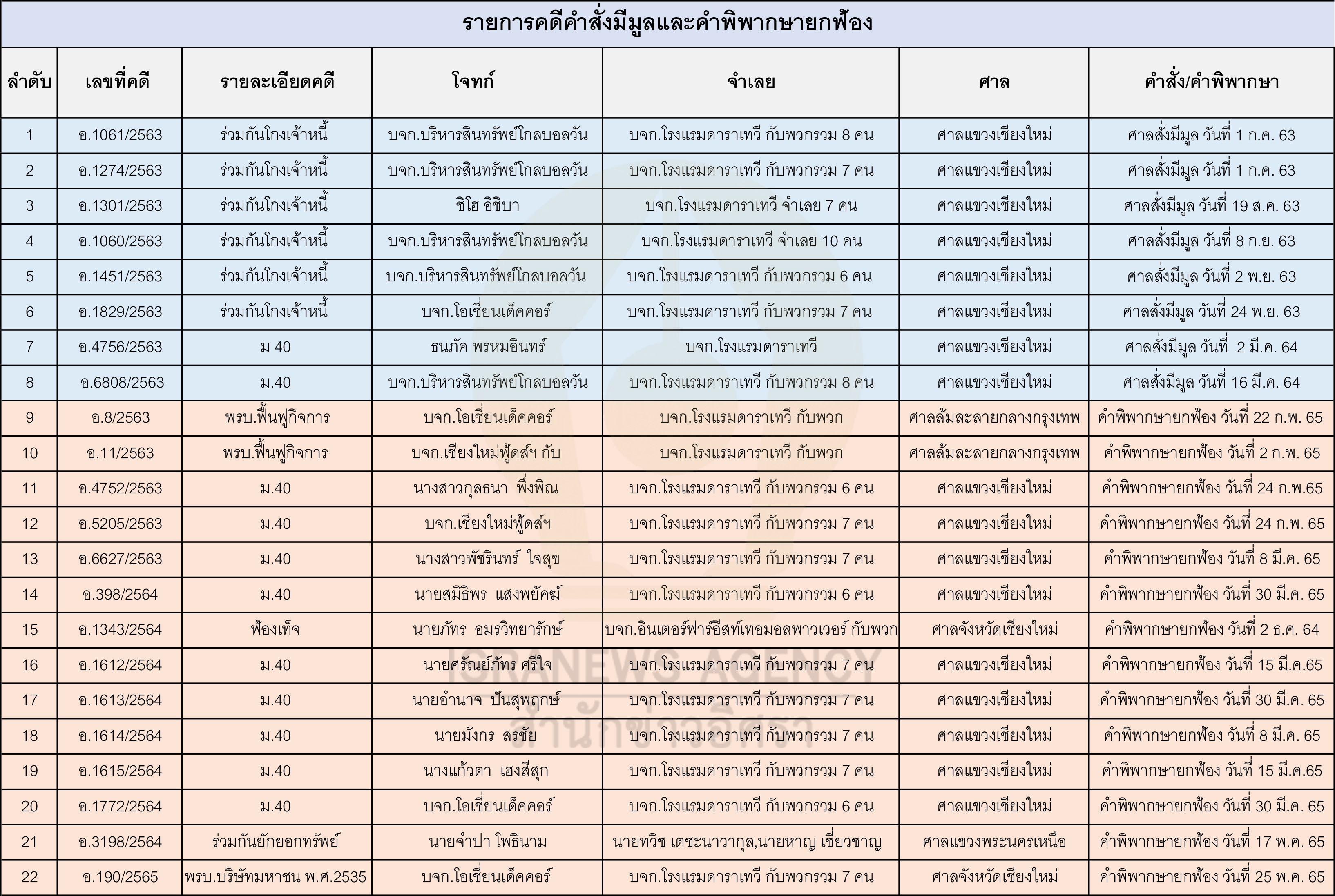 เปิดจำนวนคดีความ ‘เจ้าหนี้-บ.โรงแรมดาราเทวีและพวก’ พบมีการยื่นฟ้อง ‘ศาลฯ’ อย่างน้อย 73 คดี พร้อมเผยภาพ ‘โรงแรมดาราเทวี’ จ.เชียงใหม่ ล่าสุด อยู่ในสภาพทรุดโทรม หลังถูกทิ้งร้าง 2 ปี