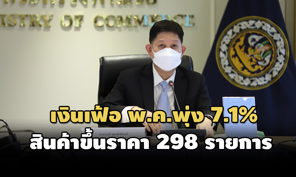 ‘พาณิชย์’ เผยอัตราเงินเฟ้อทั่วไป พ.ค. พุ่ง 7.1% สูงสุดในรอบ 13 ปี เหตุราคา ‘น้ำมัน-อาหาร’ เพิ่มขึ้น สิ้นสุดมาตรการช่วยเหลือ 'ค่าน้ำ-ค่าไฟฟ้า' พบสินค้าขึ้นราคา 298 รายการ