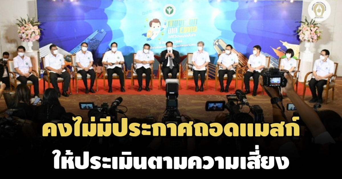 สธ.ประกาศพร้อมเปลี่ยนผ่านโควิดสู่โรคประจำถิ่น 'อนุทิน' เผยคงไม่มีประกาศ-คำสั่งถอดแมสก์ ให้ประเมินตามความเสี่ยงตัดสินใจกันเอง ปลัดฯ แจงเตรียมชงข้อพิจารณาเข้า ศบค.สัปดาห์หน้า พร้อมยันมีวัคซีนพอดี ไม่เหลือ-ขาด คาดกลางเดือน มิ.ย.อาจลดระดับเตือนภัย