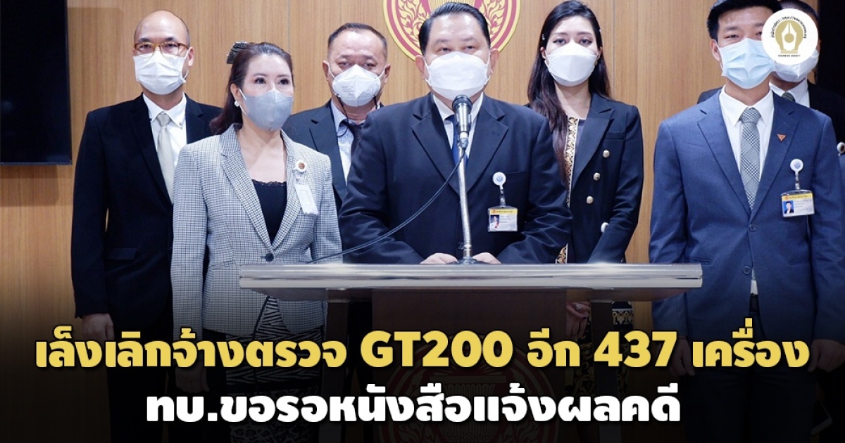 กรรมาธิการตรวจงบฯ เผย กองทัพจ้าง สวทช. 7.57 ล้านบาท ตรวจ GT200 ดำเนินการไปแล้ว 320 เครื่อง เหลืออีก 437 เครื่อง กองทัพบกรอหนังสือยืนยันอย่างเป็นทางการจากอัยการสูงสุด เพื่อยุติเรื่อง-ระงับการจัดซื้อจัดจ้าง หลังเอกชนถอนอุทธรณ์