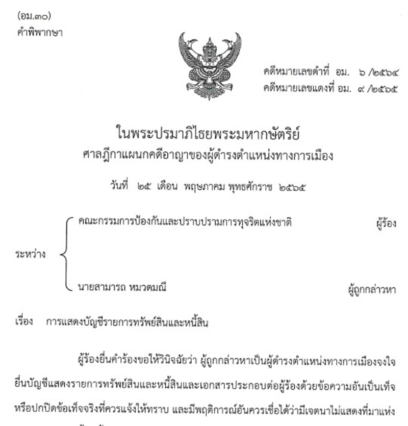 - ที่ประชุมใหญ่ศาลฎีกายืนยกคำร้องอดีตนายก อบจ.มุกดาหารยื่นบัญชีฯเท็จ คดีขาดอายุความ