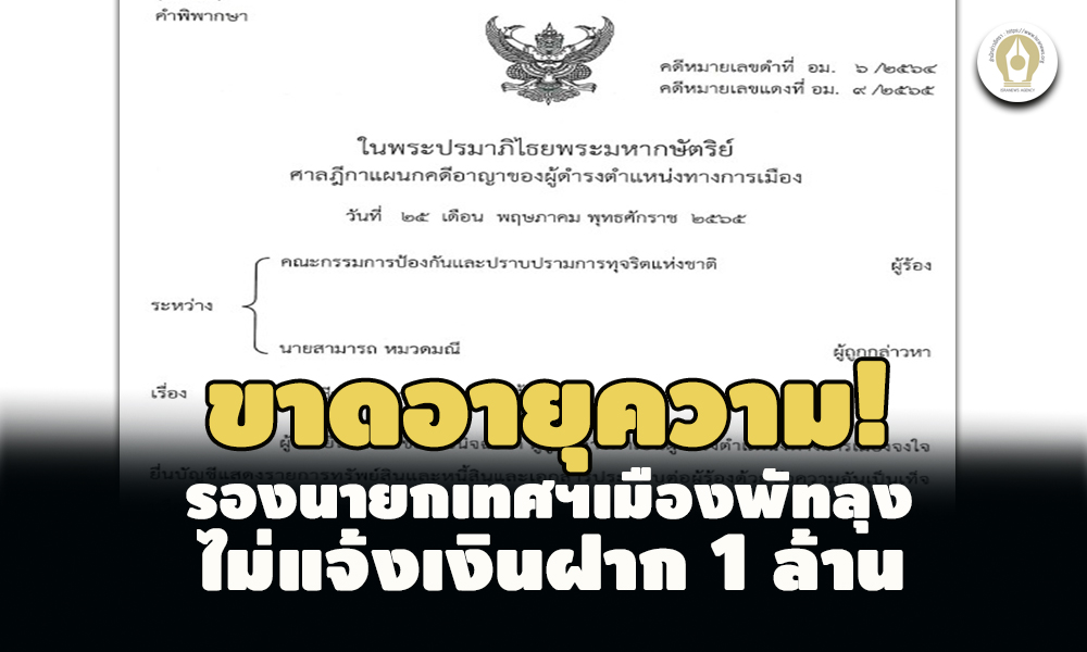 - อีกราย! ศาลฎีกาฯยกคำร้อง รองนายกเทศฯ จ.พิษณุโลก ยื่นบัญชีฯเท็จ ขาดอายุความ5 ปี