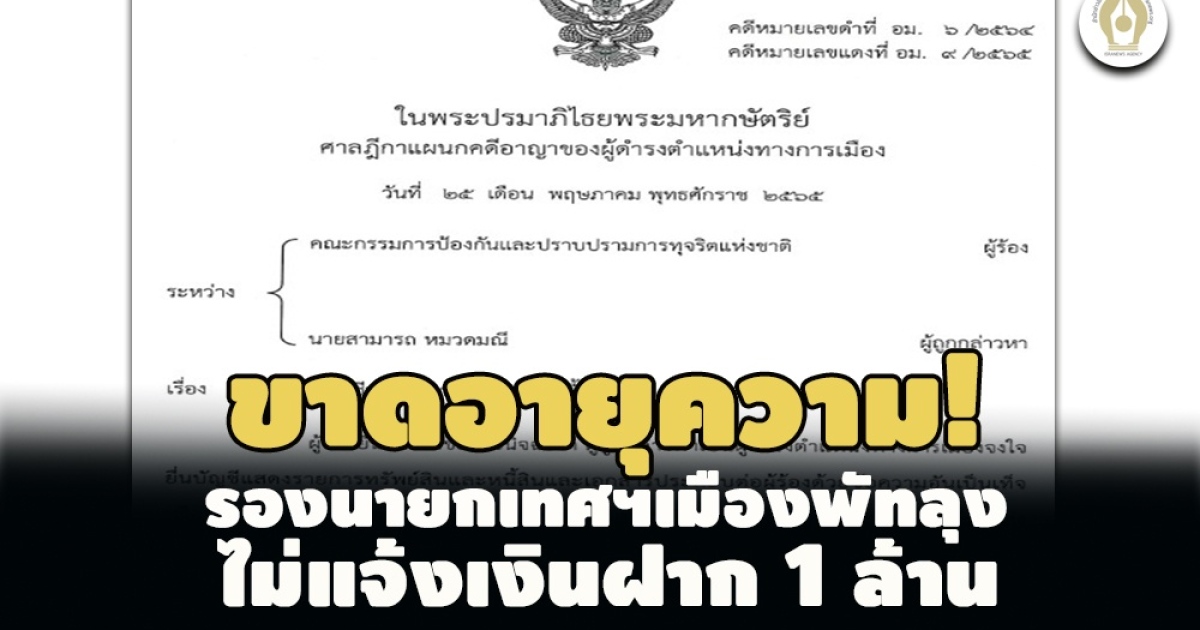 - ขาดอายุความ! ศาลฎีกาฯ ยกคำร้อง อดีต ส.ว.นครปฐม ยื่นบัญชีฯเท็จ ยุคเป็น ส.จ.