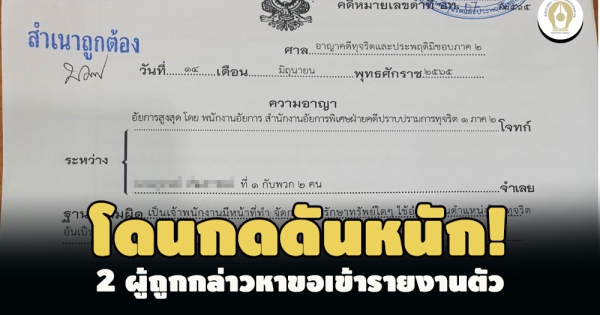 • โดนกดดันหนัก! 2 ผู้ถูกกล่าวหาคดี'สุนทร'รุกป่าขอเข้ารายงานตัว-ก่อนยื่นคนละ3แสนได้ประกัน