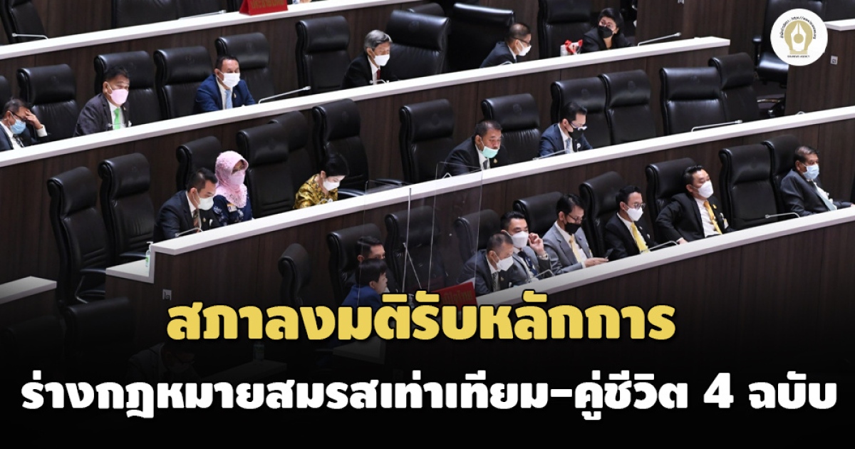 ผู้สื่อข่าวรายงานว่า เมื่อวันที่ 15 มิ.ย.2565 ที่ประชุมสภาผู้แทนราษฎร (ส.ส.) พิจารณาร่างกฎหมายที่เกี่ยวกับการส่งเสริมความเท่าเทียมกันทางเพศ รวม 4 ฉบับ ซึ่งสภาใช้เวลาตลอดทั้งวันในการอภิปรายสาระสำคัญของร่างกฎหมาย กระทั่งมีมติเห็นชอบ รับหลักการทั้ง 4 ฉบับ โดยมีรายละเอียด ดังนี้