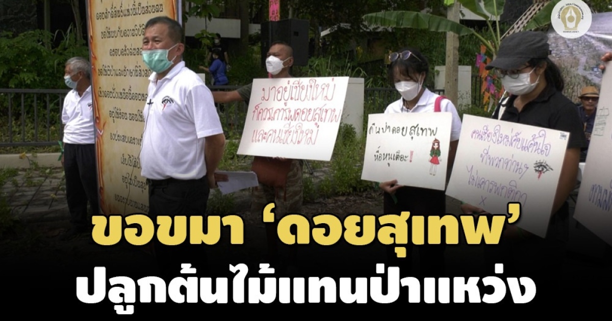 เครือข่ายฯ จัดกิจกรรมปอยป่าแหว่ง ขอขมาผืนป่า'ดอยสุเทพ'-ปลูกต้นไม้ทดแทน บริเวณบ้านพักศาล 45 หลัง หลังศาลอุทธรณ์ ภาค 5 คืนพื้นที่แก่กรมธนารักษ์ ลั่นจะเคลื่อนไหวอีกครั้งหากยังไม่ได้พื้นที่อาคารคอนโดฯ อีก 9 หลัง