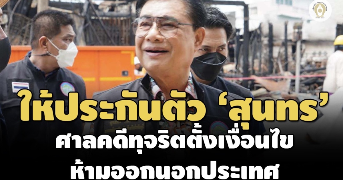 'ศาลคดีทุจริต' อนุมัติให้ 'สุนทร วิลาลัย์' นายก อบจ.ปราจีนบุรี พ่อ.รมช.ศึกษา ประกันตัววงเงิน 6 แสนบาท แต่ตั้งเงื่อนไขห้ามเดินทางออกนอกประเทศ หลังก่อนหน้านี้ ผบก.ภ.จว.ระยอง ยืนยันเป็นทางการ 'สุนทร' ไม่ได้เข้ามอบตัว แต่โดนจับกุมตัวตามหมายจับ