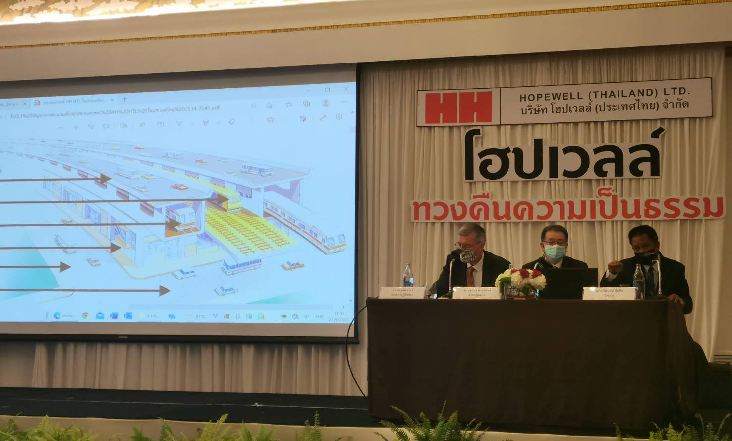 เมื่อวันที่ 21 มิ.ย. บริษัท โฮปเวลล์ (ประเทศไทย) จำกัด เปิดแถลงข่าว ‘โฮปเวลล์ทวงคืนความเป็นธรรม’ โดยเรียกร้องให้กระทรวงคมนาคมและการรถไฟแห่งประเทศไทย (รฟท.) ปฏิบัติตามคำชี้ขาดของอนุญาโตตุลาการ และคำพิพากษาศาลปกครองสูงสุด โดยให้คืนเงินตอบแทน เงินลงทุน หนังสือค้ำประกันฯและค่าธรรมเนียมโครงการระบบการขนส่งทางรถไฟยกระดับในกรุงเทพฯ ให้แก่บริษัท โฮปเวลล์ (ประเทศไทย) จำกัด 11,888 ล้านบาท พร้อมดอกเบี้ย 7.5% ต่อปี
