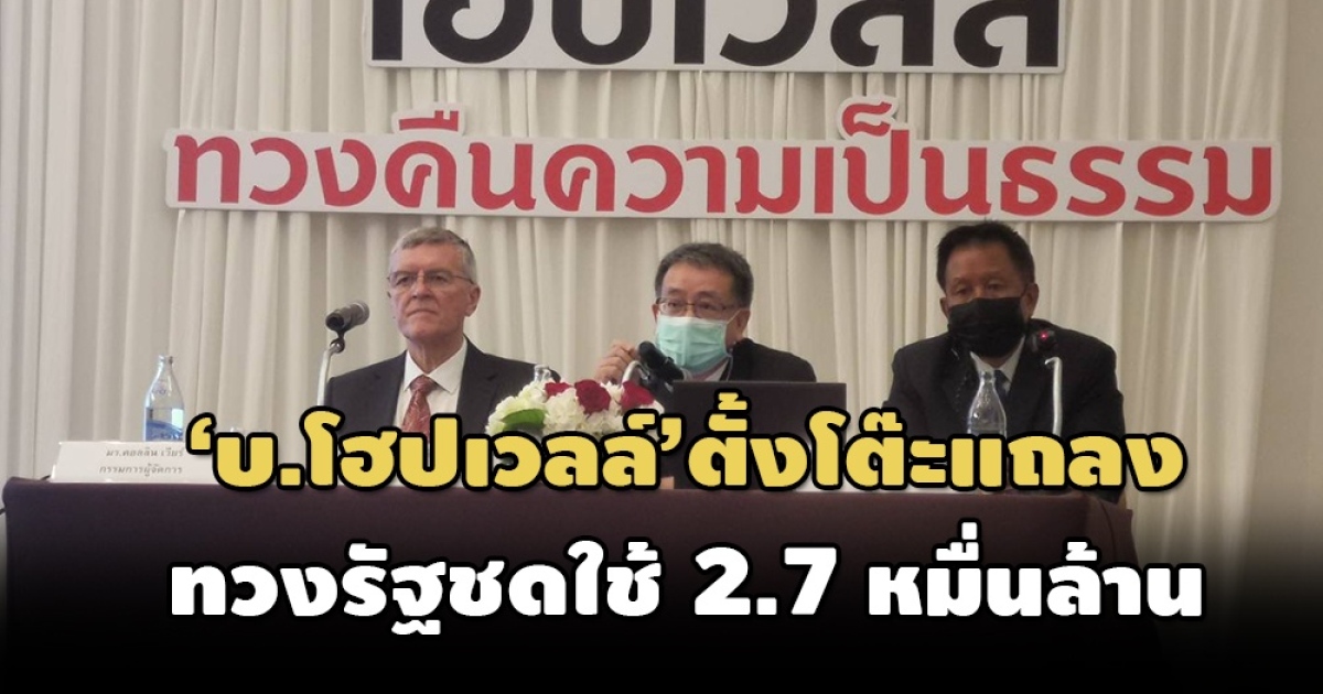 ‘บ.โฮปเวลล์’ ตั้งโต๊ะแถลงขอความเป็นธรรม-ทวงภาครัฐชดใช้ 2.7 หมื่นล้าน ยืนยันไม่ใช่เรื่องการจ่าย ‘ค่าโง่’ แต่เป็นชดใช้ ‘ค่าตอบแทน-เงินลงทุน’ ที่บริษัทฯจ่ายไปแล้ว มั่นใจ ‘คดีไม่ขาดอายุความ’ หลังศาลปกครองสูงสุดสั่งรับคดีไว้พิจารณาใหม่