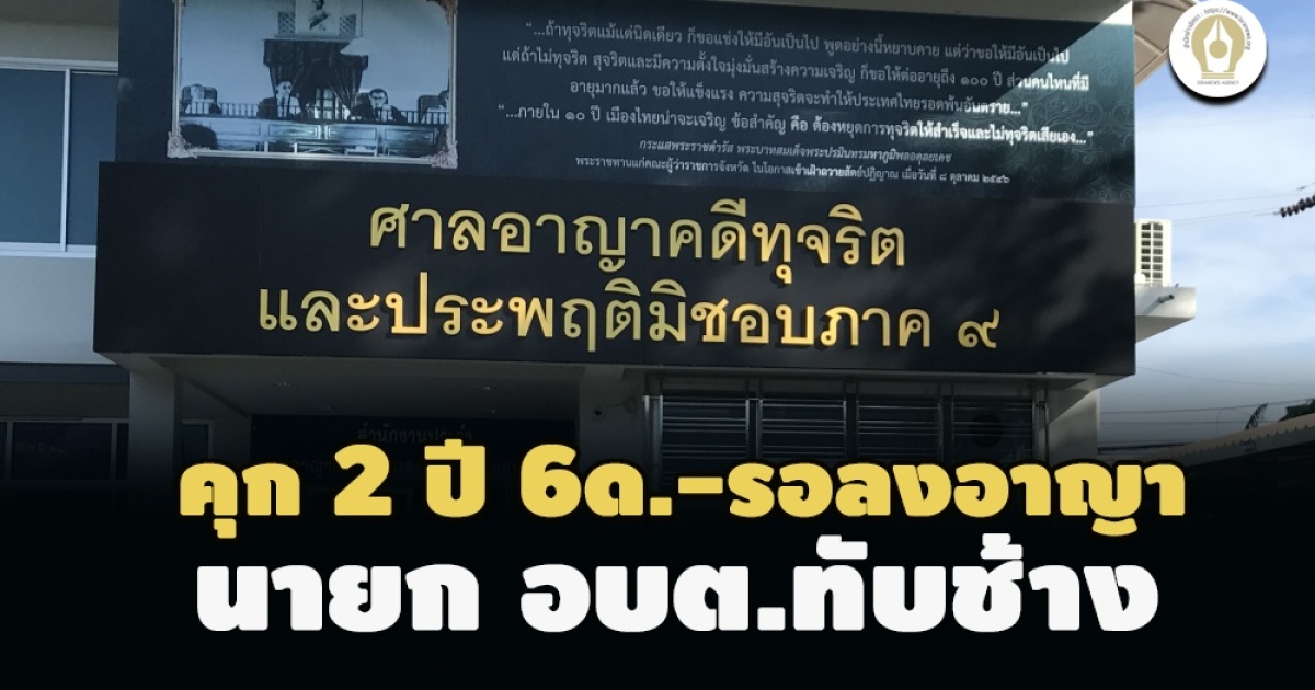 ป.ป.ช. เผยแพร่ความคืบหน้าคดีกล่าวหา 'สุทิน แท่นบำรุง ' นายก อบต.ทับช้าง อำเภอนาทวี สงขลา ไม่สอบราคาจ้างโครงการปรับปรุงต่อเติมศูนย์พัฒนาเด็กเล็ก-เบิกจ่ายเงินให้บุคคลอื่น ล่าสุด ศาลอาญาคดีทุจริตประพฤติมิชอบภาค 9 พิพากษาลงโทษจำคุก 5 ปี ปรับ 4 หมื่น รับสารภาพ ลดเหลือ 2 ปี 6 เดือน โทษจำคุกให้รอลงอาญาไว้ 2 ปี -ป.ป.ช.ขออุทธรณ์สู้ต่อ