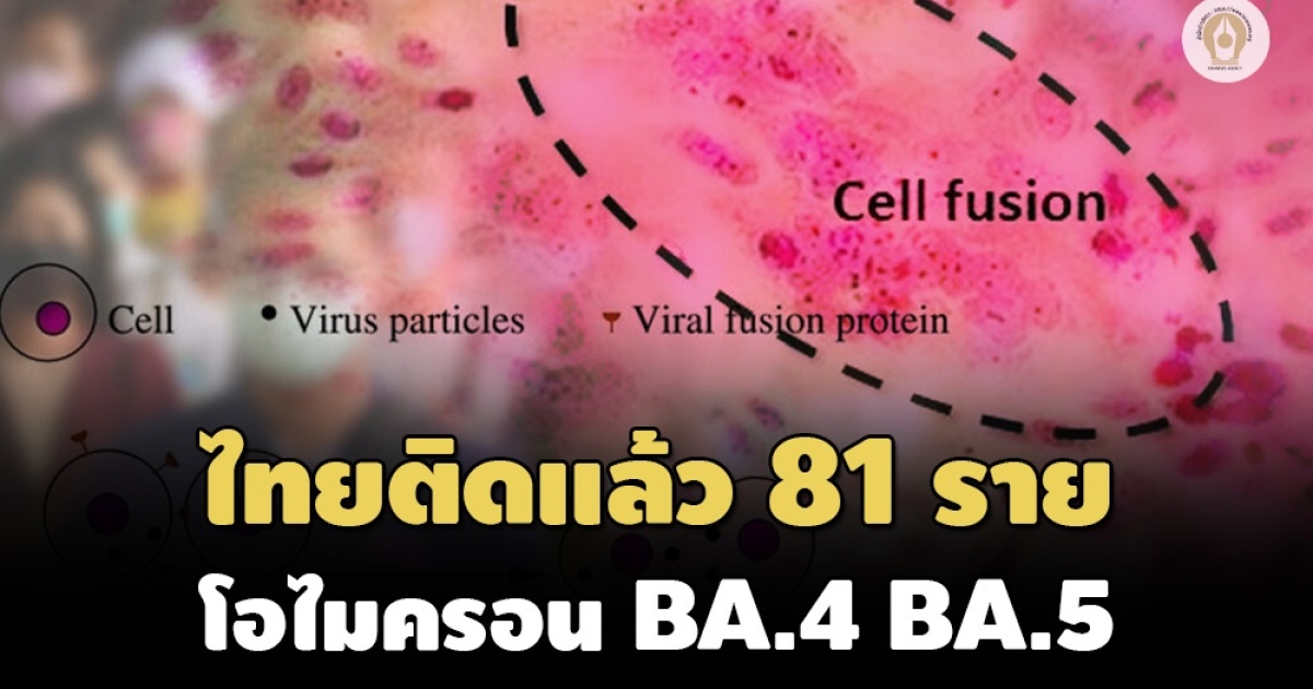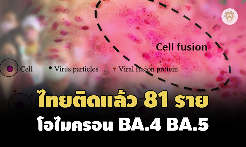 ศูนย์จีโนมฯ เผยไทยติดโอไมครอน BA.4 และ BA.5 แล้ว 81 ราย คาดเป็นไปได้สูงที่จะเข้ามาระบาดแทนที่ BA.2.12.1 แถมหนามที่กลายพันธุ์จับกับเซลล์ปอดของมนุษย์ได้ดีขึ้น อันตรายถึงตาย ชี้กำลังแพร่ระบาดอย่างรวดเร็วในยุโรป มีผู้เสียชีวิตเพิ่มขึ้น