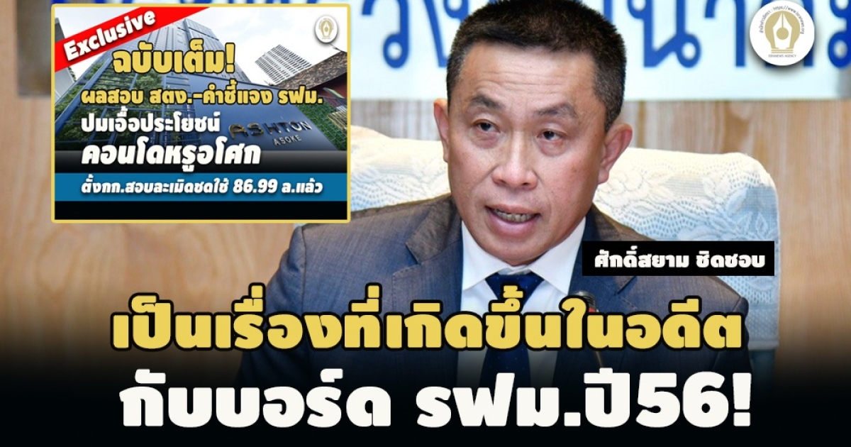 'ศักดิ์สยาม ชิดชอบ' รมว.คมนาคม แจงกรณี สตง.สรุปผลสอบรฟม.เอื้อคอนโดหรูอโศก ส่ง ป.ป.ช.พร้อมสั่งชดใช้ค่าเสียหาย 86.99 ล. เป็นเรื่องในอดีตเหตุเกิดช่วงการบริหารบอร์ด ปี 56 ไม่เกี่ยวข้องยุคปัจจุบัน แต่สั่งการตรวจสอบขั้นตอนการดำเนินงานทางกฎหมายแล้ว