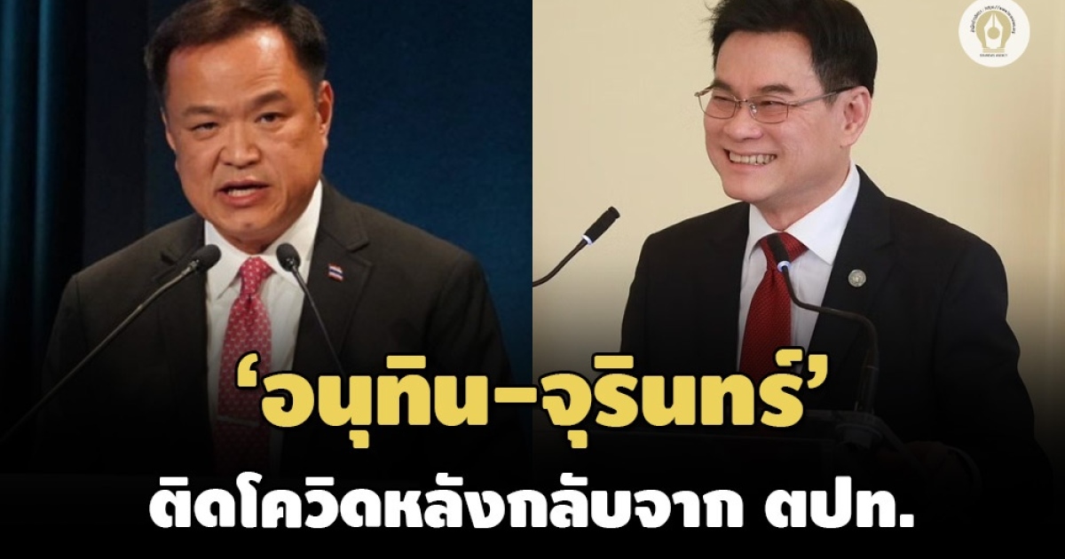 ‘อนุทิน-จุรินทร์’ ติดโควิดหลังกลับจากปฏิบัติภารกิจที่ต่างประเทศ แยกตัวเพื่อความปลอดภัย 1 สัปดาห์ อยู่ระหว่างพักรักษาตัว พร้อมทำงานแบบ work from home ตามมาตรการของแพทย์