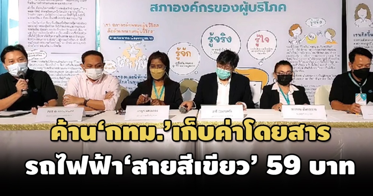 ‘สภาองค์กรของผู้บริโภค’ ค้าน ‘ชัชชาติ’ ประกาศเก็บค่าโดยสารรถไฟฟ้า ‘สายสีเขียว’ 59 บาทตลอดสาย ซ้ำเติมผู้บริโภคท่ามกลางวิกฤติน้ำมันแพง เสนอกำหนดเพดานค่าโดยสารสูงสุดไม่เกิน 44 บาท ในช่วงที่ยังไม่มีต่อสัมปทาน