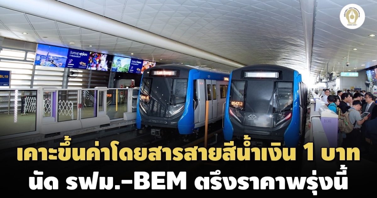 ครม.มีมติขึ้นค่าโดยสารรถไฟฟ้าสายสีน้ำเงิน 1 บาท ในสถานีที่ 6,9,11 และ 12 สถานีขึ้นไป หลังถึงรอบปรับทุกๆ 2 ปี ด้าน ‘ศักดิ์สยาม’ นัดรฟม.-BEM ถกด่วนตรึงราคาเดิมต่อสิ้นปีนี้