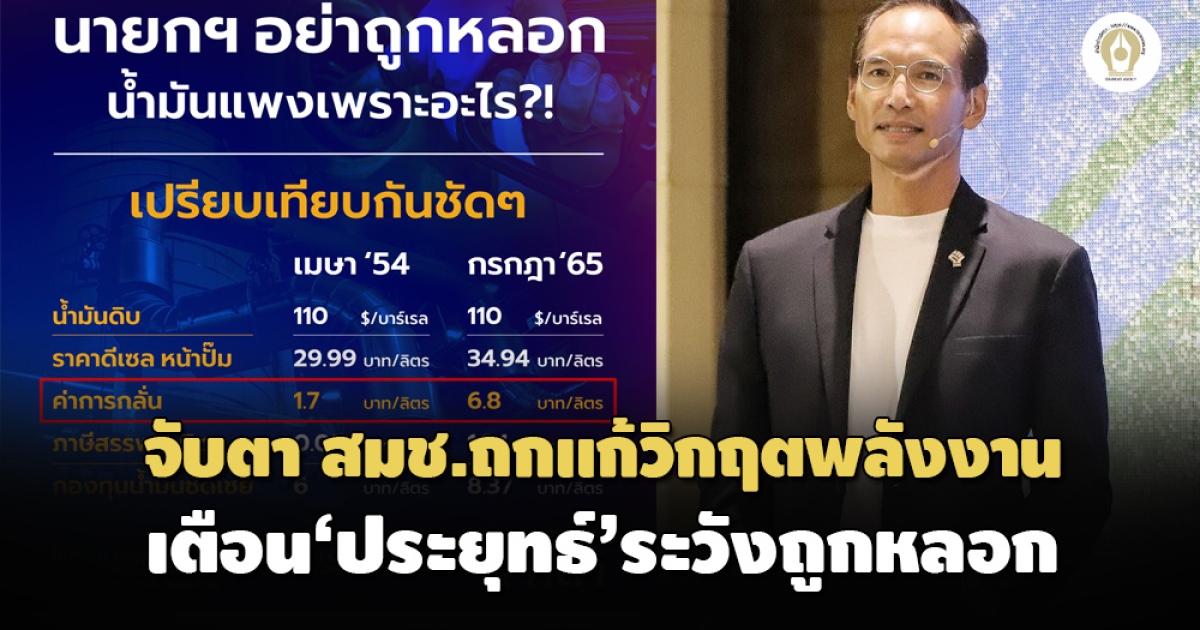 ‘กรณ์’ หัวหน้าพรรคกล้า เตือน ‘ประยุทธ์’ ระวังถูกหลอก เทียบราคาน้ำมันดิบเท่ากับยุค ‘รัฐบาลอภิสิทธิ์’ ที่ 110 ดอลลาร์ต่อบาร์เรล แต่ค่าการกลั่น – น้ำมันดีเซลหน้าปั๊มถูกกว่า 5 บาทต่อลิตร จับตา 4 ก.ค. สมช.ถกแก้วิกฤตพลังงาน
