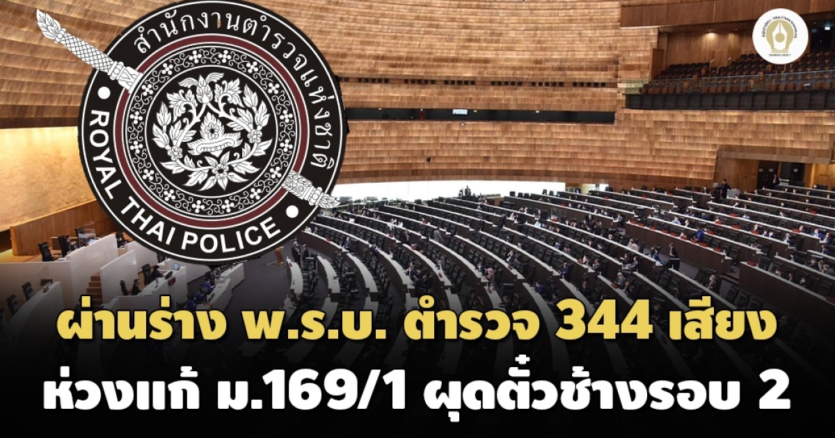 ที่ประชุมร่วมรัฐสภาเข็น ร่างพ.ร.บ.ตำรวจผ่านแล้วด้วยคะแนน 344 เสียง ฝ่าเสียงค้าน ‘พรรคก้าวไกล-กรรมาธิการฯ’ ดาหน้าแย้งปมแก้ ม.169/1 หน้างานโดยไม่ถอนร่างไปแก้ใหม่ เสี่ยงเกิดตั๋วช้างรอบ 2 และสร้างบรรทัดฐานใหม่ในกระบวนการนิติบัญญัติ
