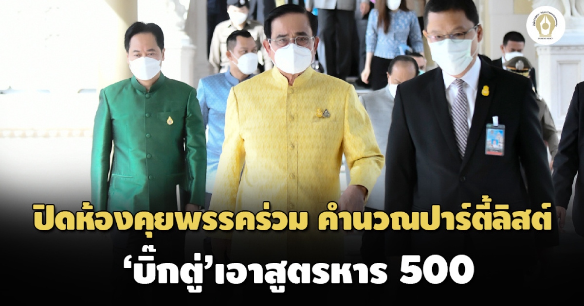 'บิ๊กตู่'ปิดห้องคุยพรรคร่วม ถกสูตรคำนวณปาร์ตี้ลิสต์ ส่งสัญญาณหาร 500 เชื่อมีคนส่งศาล รธน.ชี้ขาดอีกขั้นตอน ขณะที่ 'ประวิตร' ท่าทีอ่อนลง ย้ำเอาไงก็ว่ากัน 'สุชาติ' รับลูกกล่อม ส.ส.พปชร.บอกเป็นประโยชน์กับพรรคมากกว่า