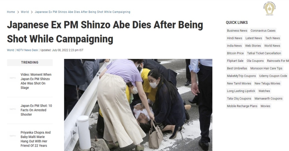 เรียบเรียงจากhttps://indianexpress.com/article/world/former-japan-pm-shinzo-abe-shot-8016155/,https://www.ndtv.com/world-news/japanese-former-prime-minister-shinzo-abe-dies-after-being-shot-while-campaigning-news-agency-afp-quoting-local-media-3139353