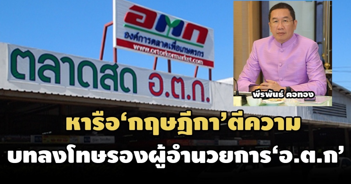 ‘อ.ต.ก.’ หารือ ‘กฤษฎีกา’ ตีความบทลงโทษ รักษาการ ‘รองผู้อำนวยการ อ.ต.ก.’ กรณีเซ็นรับข้าวสารตกเกรดเข้าโกดัง สมัยเป็น ‘หัวหน้าคลังสินค้า’ เมื่อปี 55