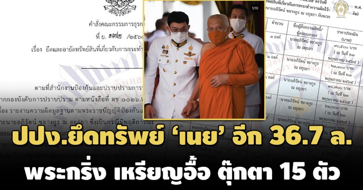 - ปปง.ยึดอายัดทรัพย์ ‘อภิรัตน์ ชยางกูรฯ’ 92 ล. ในชื่อ 5 คนถือครอง คดียักยอกเงินวัดบวรฯ