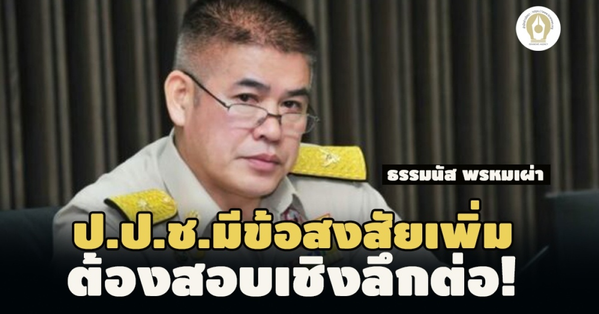 ประเด็นสอบทรัพย์สิน 'ธรรมนัส' เสร็จไม่ทัน มิ.ย.65 เหตุมีข้อสงสัยเพิ่มต้องสอบเชิงลึกต่อ 'ภูเทพ ทวีโชติธนากุล' ผู้ช่วยเลขาฯ ป.ป.ช.ยันต้องทำเร่งด่วน อายุความหมด 5 ปี หลังผ่านวันยื่นบัญชีทรัพย์สินมาแล้ว 2 ปี แต่ยังเปิดเผยรายละเอียดไม่ได้เรื่องอยู่ในสำนวน