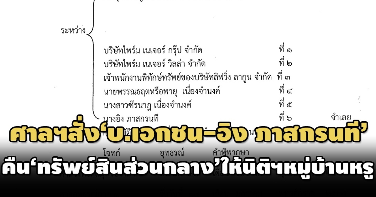 ‘ศาลอุทธรณ์’ พิพากษาให้ ‘บ.เอกชน-อิง ภาสกรนที’ คืนทรัพย์สินส่วนกลาง แก่นิติบุคคลหมู่บ้านหรู ‘ไพร์ม เนเจอร์ วิลล่า’ พร้อมสั่งเพิกถอนการซื้อขายที่ดิน 2 แปลง ตกเป็น ‘โมฆะ’ ตามประมวลกฎหมายแพ่งฯ