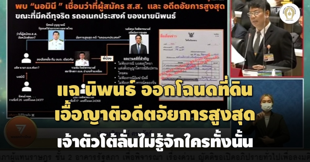 ‘ประเสริฐพงษ์ ก้าวไกล’ อภิปราย ‘นิพนธ์ บุญญามณี’ ปมออกโฉนดที่ดินเอื้อนายทุน 27 ราย แฉมีน้องสาวอดีตอัยการสูงสุดเกี่ยวพันด้วย โยงอาจเกี่ยวพันการไม่ฟ้องคดีรถซ่อมบำรุงสมัยเป็นนายกอบจ.สงขลา จน ป.ป.ช.ต้องฟ้องเอง ด้าน ‘นิพนธ์’แจงยิบปมชี้มูล ลั่นไม่รู้จักใครทั้งนั้น