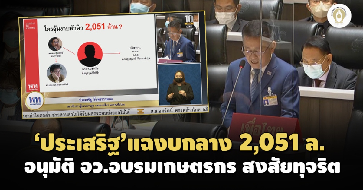 ‘ประเสริฐ’ ตั้งปมสงสัย ‘บิ๊กตู่’ ส่อทุจริตงบกลาง 2,051 ล้านบาท อนุมัติ อว.ทำโครงการอบรมเกษตรกรซ้ำซ้อนกระทรวงอื่น พร้อมยกตัวอย่างพิรุธ มทร.อีสาน รับจัดสรร 368 ล้านบาท แต่ฝึกอบรม-แจกของไม่ครบตามเกณฑ์ คาดเสียหาย 357 ล้านบาท ขณะที่ ‘เสกสกล’ จ่อฟ้องกลับ หลังถูกพาดพิงมีเอี่ยวด้วย