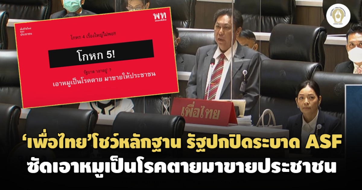 ‘วิสุทธิ์ ไชยณรุณ’ ส.ส.เพื่อไทย อัดรัฐบาลโกหกซ้ำซาก เอาหมูเป็นโรคตายมาขายประชาชน โชว์หลักฐานตรวจ ASF 3 ครั้ง พบเชื้อทุกครั้ง ซัด ‘รมว.เกษตรฯ-อธิบดีปศุสัตว์’ บอกเชื้อเป็นศูนย์ต้นเดือน พ.ค. แต่วันที่ 25 พ.ค.65 ยังพบติดเชื้อ 8 จาก 20 ตัวอย่าง