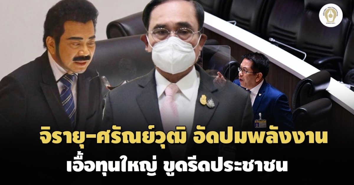 จิรายุ-ศรัณย์วุฒิ อัด ‘ประยุทธ์’ ปมพลังงานแพง ชี้เป้าเอื้อกลุ่มทุนใหญ่-โรงกลั่น ไม่เคยเจรจาลดค่าการกลั่น-ค่าตลาดลงให้ประชาชน อัดเลยไปที่บริษัททำโรงกลั่นอิ่มหมีพีมันได้ทั้งค่าการกลั่น-เงินชดเชยกองทุนน้ำมัน