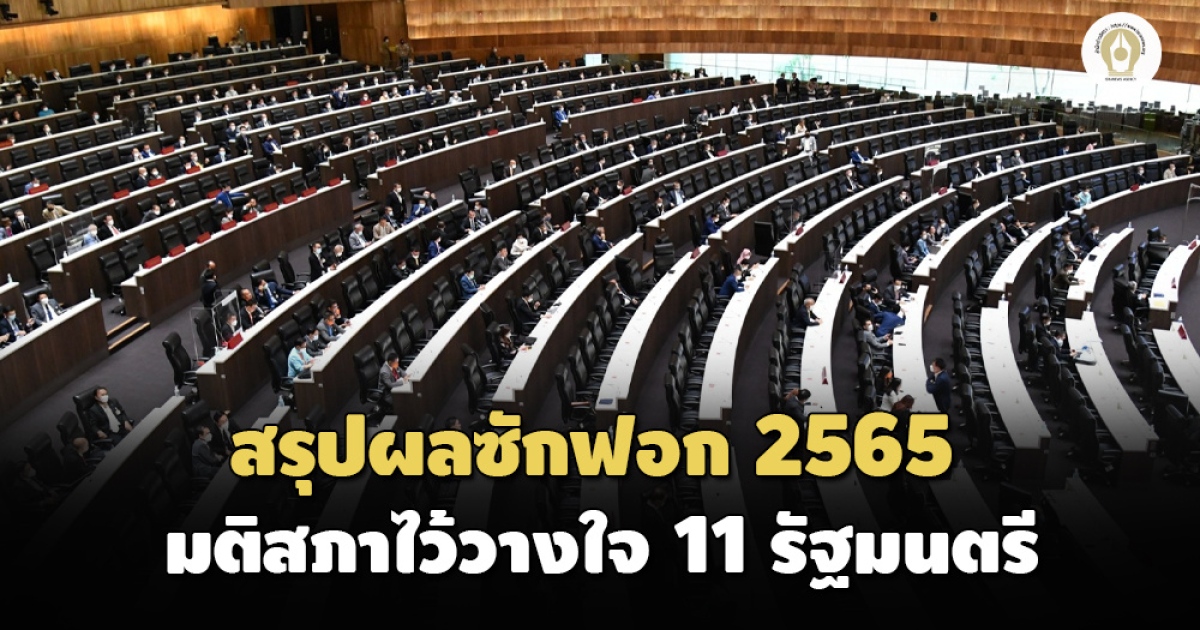 ผู้สื่อข่าวรายงานว่า เมื่อวันที่ 23 ก.ค.2565 เวลาประมาณ 10.00 น. ที่รัฐสภา สภาผู้แทนราษฎรลงมติญัตติการอภิปรายไม่ไว้วางใจรัฐมนตรีรายบุคคล รวม 11 ราย หลังจากดำเนินการตามญัตติดังกล่าวมาตั้งแต่วันที่ 19 ก.ค.- 22 ก.ค. โดยรัฐมนตรีที่ได้รับความไว้วางใจต้องมีคะแนนเกินกึ่งหนึ่งจากจำนวน ส.ส. ทั้งหมดเท่าที่มีอยู่ในสภา หรือ มากกว่า 239 เสียง