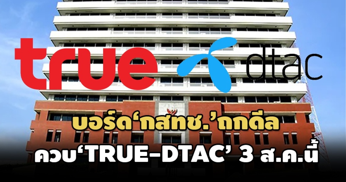สำนักงาน กสทช. ชงบอร์ด กสทช. ถกควบรวมธุรกิจ ‘TRUE-DTAC’ 3 ส.ค.นี้ เผยความเห็นอนุกรรมการฯด้านผู้บริโภค ค้านรวมธุรกิจ ส่วนอนุกรรมการฯด้านเศรษฐศาสตร์ หวั่นค่าบริการเพิ่มขึ้น ขณะที่อนุกรรมการฯด้านกม.มีมติ 9 ต่อ 1 ระบุ ‘กสทช.’ มี ‘อำนาจ’ พิจารณาว่าจะ ‘อนุญาต’ หรือ ‘ไม่อนุญาต’