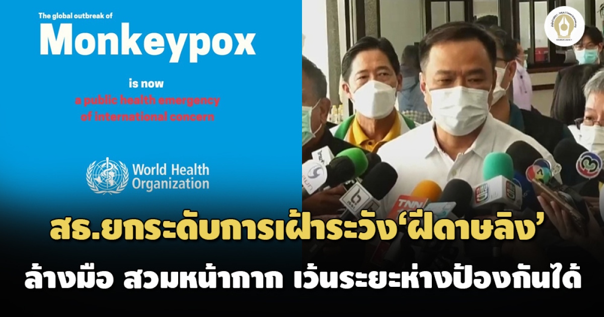 ‘อนุทิน’ เรียกประชุมด่วนผู้บริหาร สธ. หลัง WHO ประกาศให้ ‘ฝีดาษลิง’ เป็นภาวะฉุกเฉินด้านสาธารณสุขระหว่างประเทศ สั่งยกระดับศูนย์เฝ้าระวัง – ยังไม่ประกาศเป็นโรคติดต่อร้ายแรง ขอประชาชนอย่าตื่นตระหนก ย้ำมาตรการป้องกันควิด สวมหน้า ล้างมือ เว้นระยะห่าง รับมือได้ทั้งสองโรค