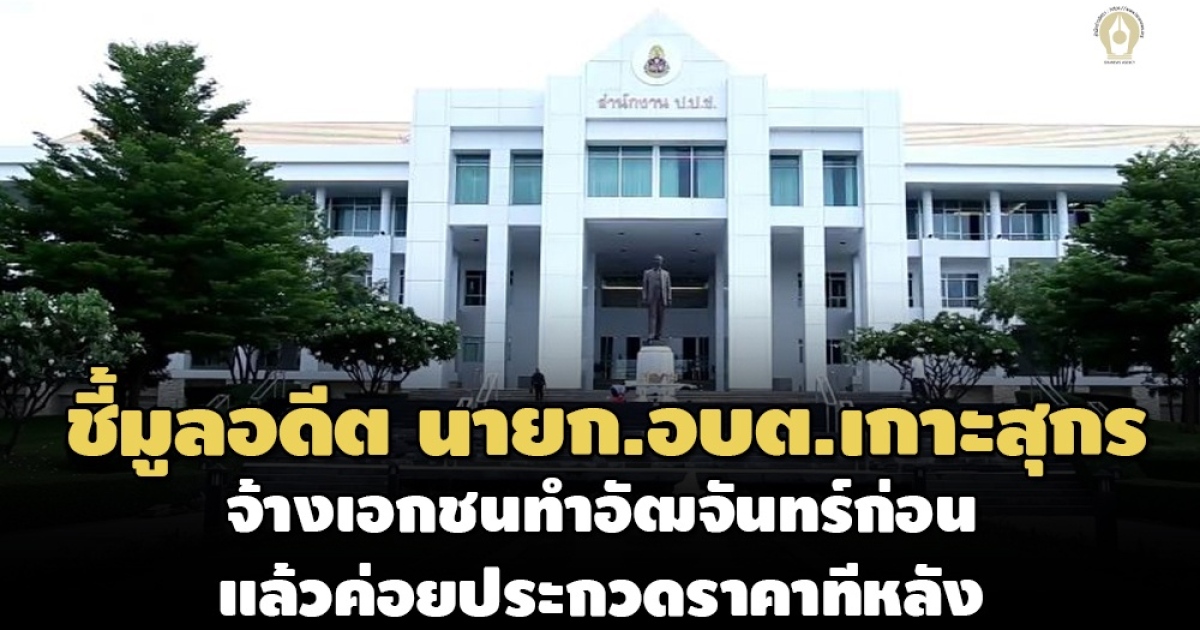 'ป.ป.ช.'ภาค 9 ชี้มูลอดีตนายก อบต.เกาะสุกร จ.ตรัง พร้อมพวกรวม 11 รายรวมนายก อบต.คนปัจจุบัน ปล่อยให้เอกชนทำงานจัดทำอัฒจันทร์ก่อน สืบราคาทีหลัง ชี้ชัดเป็นการใช้อำนาจในตำแหน่งโดยทุจริต อันเป็นการเสียหายแก่รัฐ