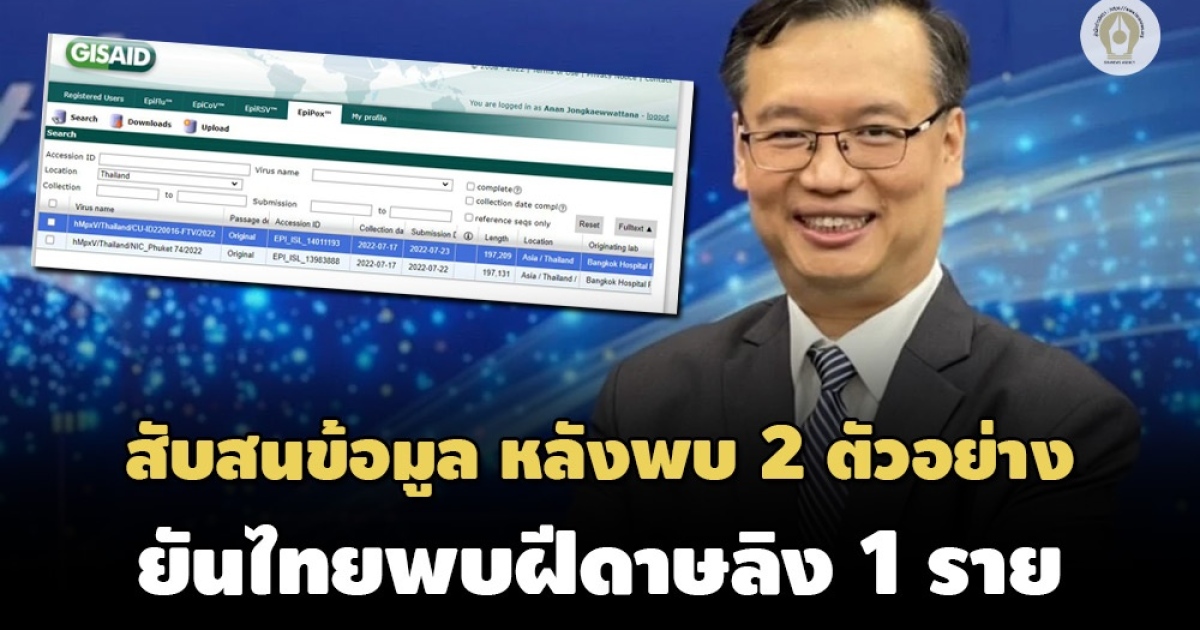 นักไวรัสวิทยา ไบโอเทค แจงเกิดความสับสน หลังเจอข้อมูลถอดรหัสไวรัส 2 ตัวอย่าง เผยไทยมีผู้ติดเชื้อฝีดาษลิงยืนยันแค่ 1 ราย