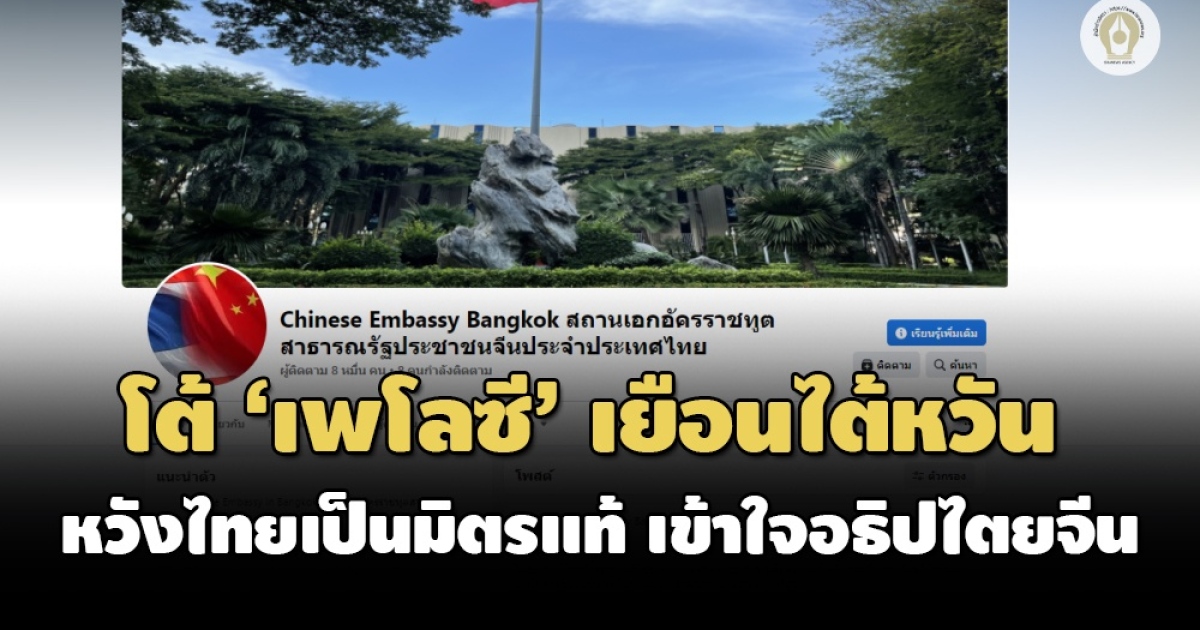 สำนักข่าวอิศรา (www.isranews.org) รายงานว่าเฟซบุ๊กสถานทูตจีนประจำประเทศไทยได้จัดทำแถลงการณ์ต่อสื่อมวลชนเพื่อตอบโต้กรณีที่นางแนนซี เพโลซี ประธานผู้แทนราษฎรสหรัฐอเมริกาเดินทางเยือนไต้หวัน มีรายละเอียดดังต่อไปนี้